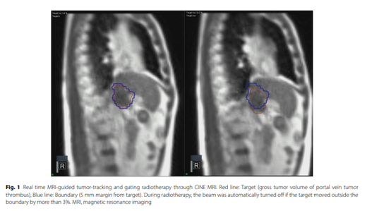 간세포암 문맥종양혈전에서 자기공명유도영상 유도 방사선치료 결과와 예후인자: 이 연구는 간세포암 환자의 문맥종양혈전(PVTT)에 대해 실시간 MRI 추적 기반 방사선치료(rtMRgRT)의 효과를 평가한 결과, 높은 국소조절률(1년 77.7%)과 생존 이득을 보였으며, 치료 반응과 RT 후 1개월 이내 시행된 TACE가 예후 향상에 유의하게 기여함을 확인한 점이 흥미로움