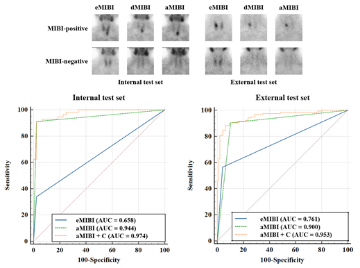 Conclusions: The diagnostic performance of aMIBI images in identifying hyperfunctioning parathyroid lesions was significantly superior to that of eMIBI images in patients with hyperparathyroidism. Models combining aMIBI images with clinical information enhanced the diagnostic performance even further.