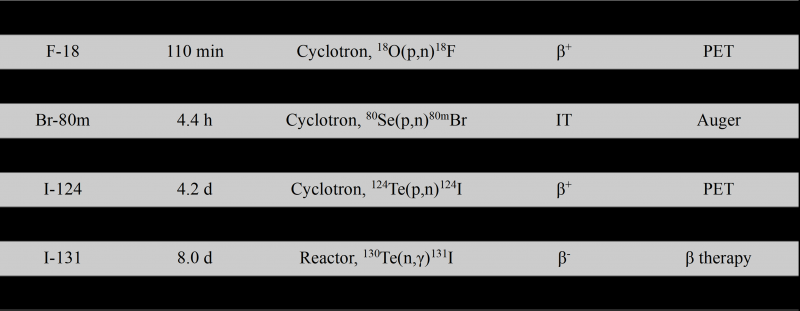 - 방사성할로겐(radiohalogen)은 세계 최초로 갑상선 암의 방사성동위원소 치료에 사용되고 있는 I-131을 비롯하여, F-18, I-123, I-124, At-211 등 핵의학 분야에서 많이 사용되고 있습니다. 최근, 알파핵종인 아스타틴-211의 전임상 및 임상연구가 활발히 이루어지면서, 방사성할로겐은 분자영상과 표적 방사성동위원소 치료를 연결하는 테라노스틱 핵종으로 주목받고 있습니다. 본 논문에서는 방사성할로겐의 생산, 전임상 및 임상 응용 사례를 다루고 있습니다.