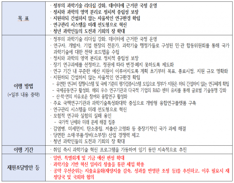 < 제20대 대통령선거 윤석열 공약목록, 중앙선거관리위원회 발췌 >