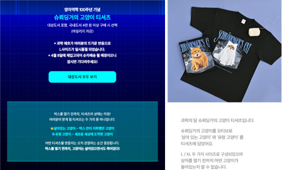 둘 중 어떤 고양이 티셔츠를 받게 될지 모른다는 점이 슈뢰딩거 고양이 컨셉을 충실히 따랐다. >