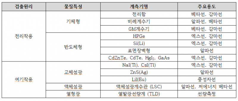 알파 붕괴 시 방출되는 감마선을 측정하여 방사능을 측정하는 검출기는 대표적으로 Dose calibrator, Gamma-well counter, High-purity germanium (HPGe) 검출기 등이 있다. 병원이나 연구기관에서 주로 사용되는 Dose calibrator는 기본적으로 아르곤(18Ar) 가스가 충전된 실린더 형태의 전리함인데, 방사성동위원소 시료의 방사능이 1 MBq 이하의 적은 양에서는 방사능 측정의 정확도가 떨어지는 단점이 있다. 때문에 방사성동위원소 시료의 방사능이 1MBq 이하 인 경우 주로 섬광계측기를 이용하여 감마선을 측정한 후 방사능을 계산하며, 이때 기하학적 효율이 거의 1에 가까운 Gamma-well counter를 주로 활용한다.