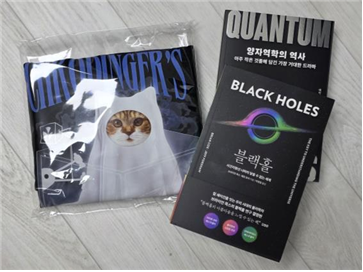 1925년은 하이젠베르크의 불확정성원리가 발표된 해이다. 이를 기념하기 위해 UN에서는 2025년을 세계 양자과학 및 기술의 해로 지정했다. 필자는 올해가 양자과학 기술의 해 인 것을 몰랐는데, 이제는 서점인지 기념품 가게인지 정체성이 모호해진 알라딘에서 양자과학 기술의 해를 기념하고자 도서 마일리지로 슈뢰딩거 고양이 티셔츠를 구매할 수 있는 이벤트를 개최하고 있다는 것을 알게 되었다. 다섯 고양이를 부양하고 있는 집사로서 이런 이벤트를 놓치는 것은 말이 안 되기에 양자역학과 블랙홀 관련 도서 두 권을 구매했다. - 티셔츠를 받기 위해 책을 샀다고 생각하실 수도 있지만, 그것은 크나큰 오해일 수 있다.