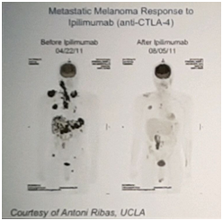 암치료에 있어서 면역 치료가 대세를 이루고 있다. 2011년 면역관문 저해제 (immune checkpoint inhibitor) 중 하나인 ipillimumab이 처음으로 전이 흑색종환자에서 FDA의 승인을 받은 이후에 다양한 종류의 면역 치료제가 암치료에 활용되고 있다. 이러한 면역 치료제들은 암세포를 찾아내어 제거하는 T세포들이 세포의 신분을 확인하는 과정에서 종양세포들이 일종의 거짓 여권을 T세포들에게 들이 밀어서 T세포의 치료를 빠져나가게 되는 과정을 막는 것으로 T세포들이 좀더 적극적으로 종양세포를 공격하게 만들어서 치료 효과를 높이고 있다. 치료 효과도 획기적이어서 이전에 치료가 어려웠던 전이 흑색종 환자에서도 눈에 띄는 생존률의 향상이 나타나고 있다.